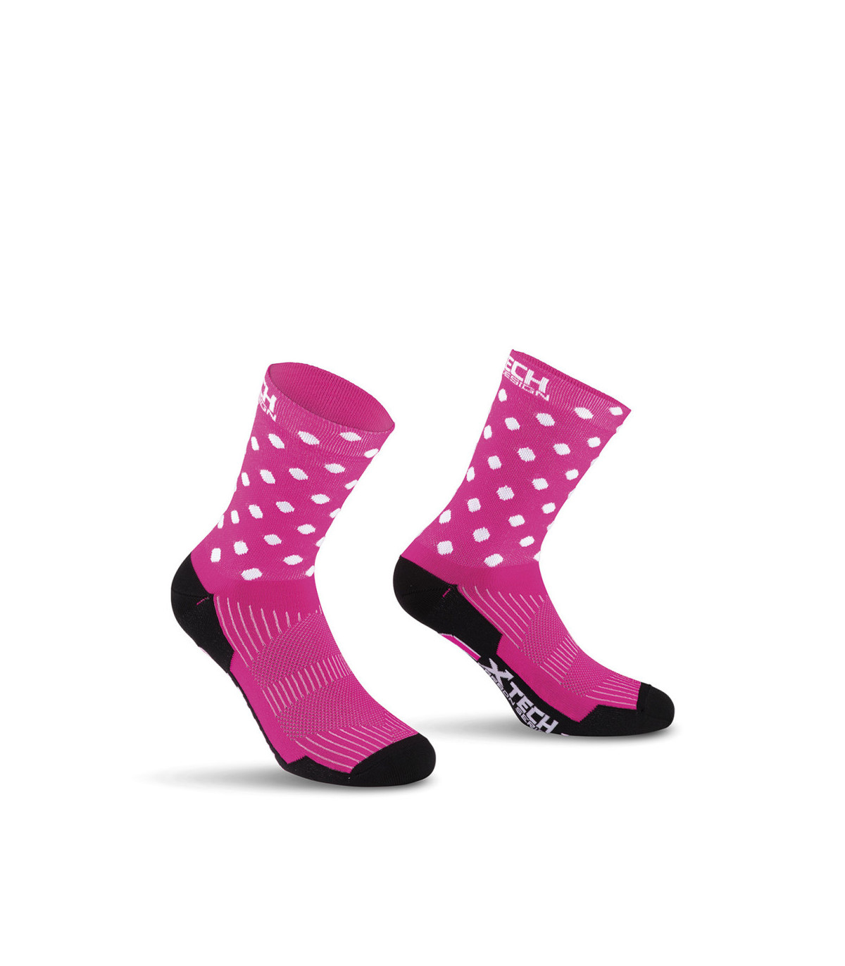Calza tecnica realizzata con materiali estremamente traspiranti e morbidi al tatto.
