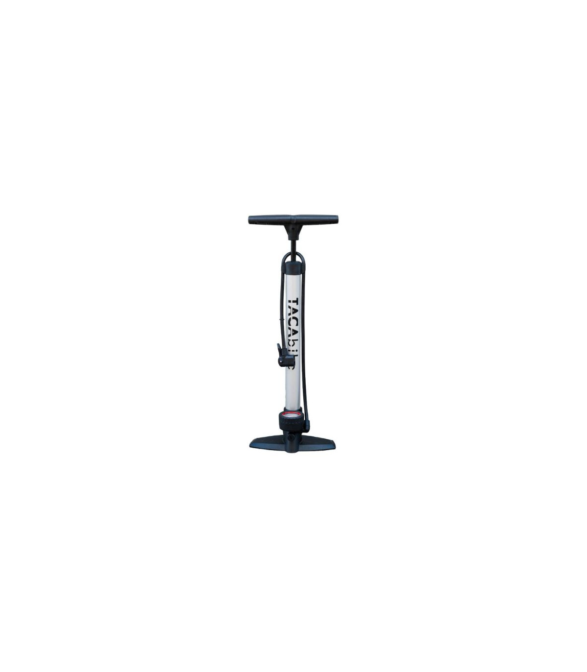 Pompa da pavimento in acciaio TACAbike, compatibile con valvole presta e Schrader, fino a 160 psi o 11 bar di pressione.