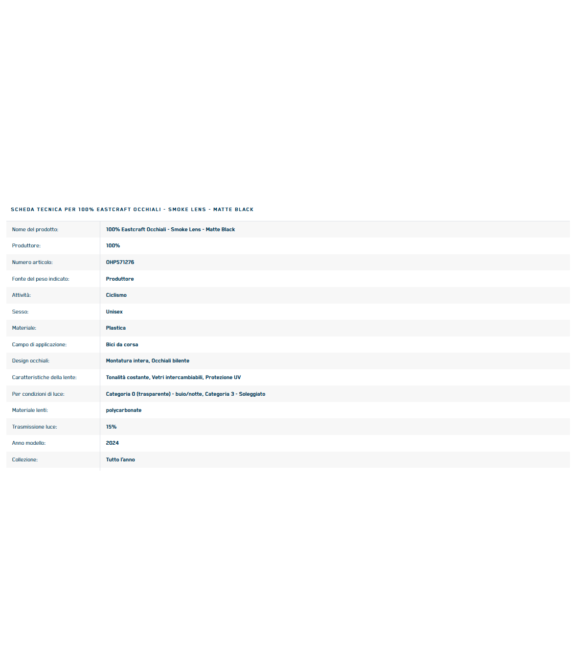 Caratteristiche degli occhiali 100% Eastcraft Smoke_