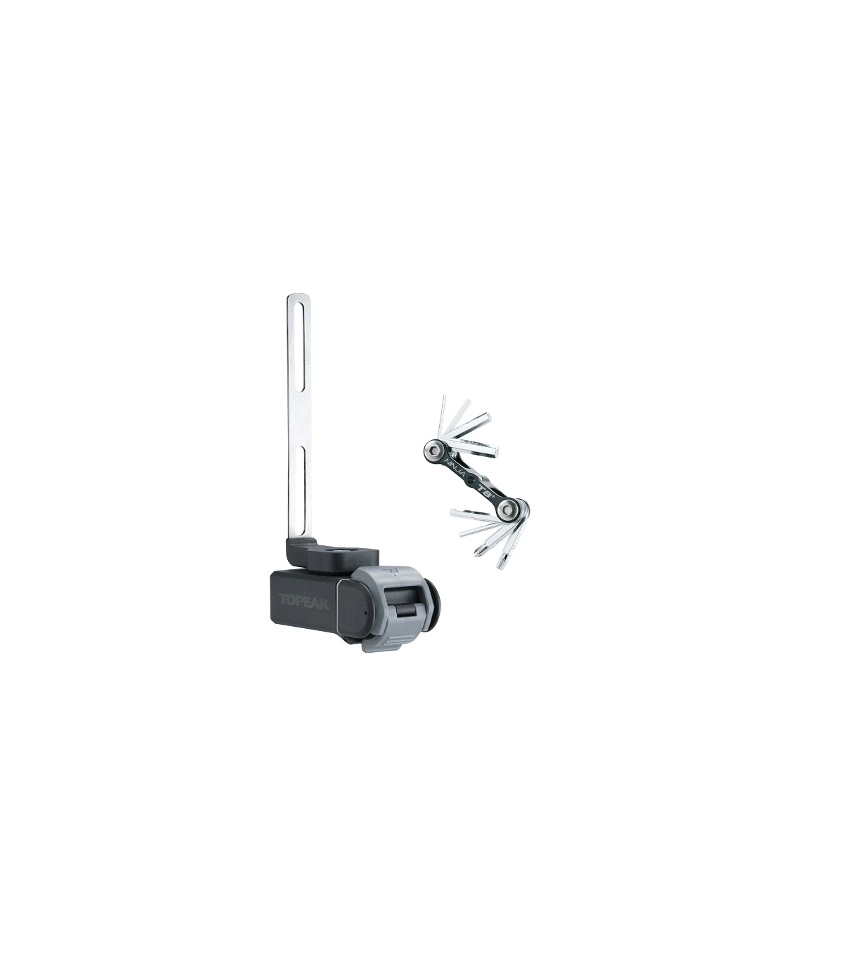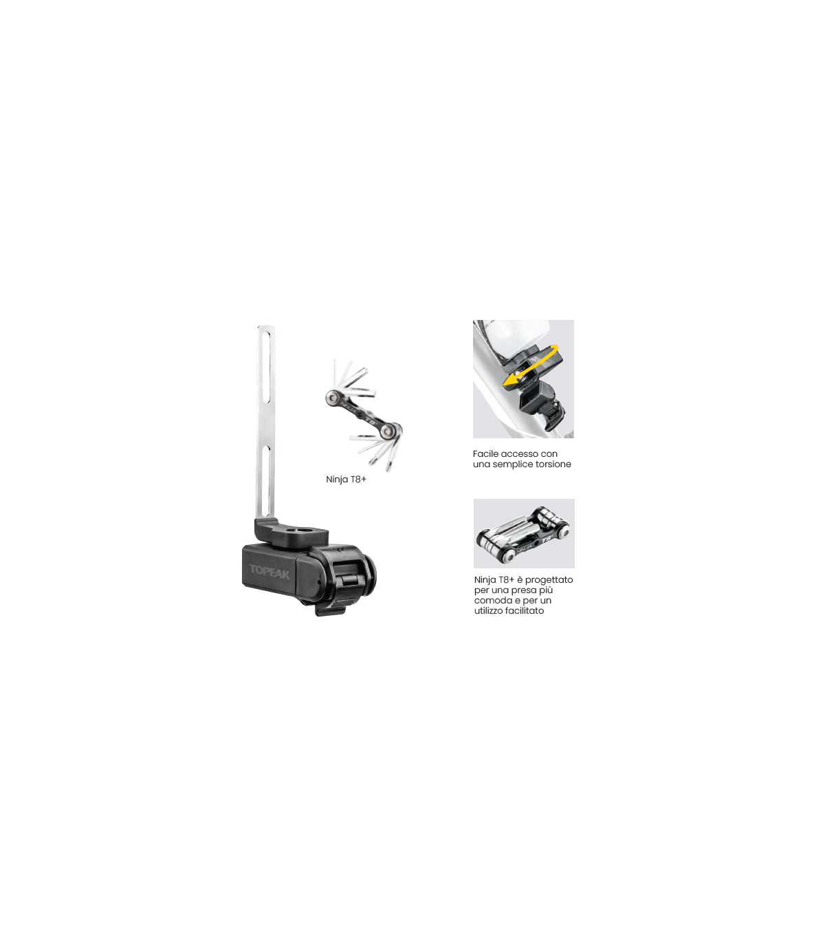 Monta il portaborraccia con la Ninja T Road con custodia incorporata in acciaio fissa e il mini utensile Ninja T8+ facilmente accessibile con una semplice torsione.