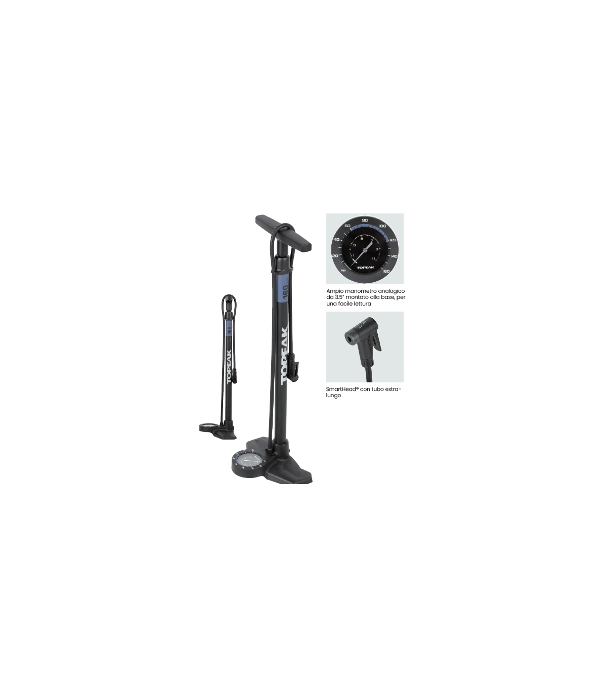 Una pompa da pavimento specificamente progettata per bici da strada e altri pneumatici ad alta pressione dotata di un ampio manometro analogico da 3,5" di facile lettura montato sulla base per misurare la pressione dei pneumatici in modo rapido e preciso. Un fusto in acciaio di dimensioni ottimali fornisce un'alta pressione, fino a 160 psi / 11 bar senza sforzo. La testa della pompa SmartHead si regola automaticamente per adattarsi alle valvole Presta o Schrader ed è una delle pompe da pavimento con il miglior rapporto qualità-prezzo sul mercato.