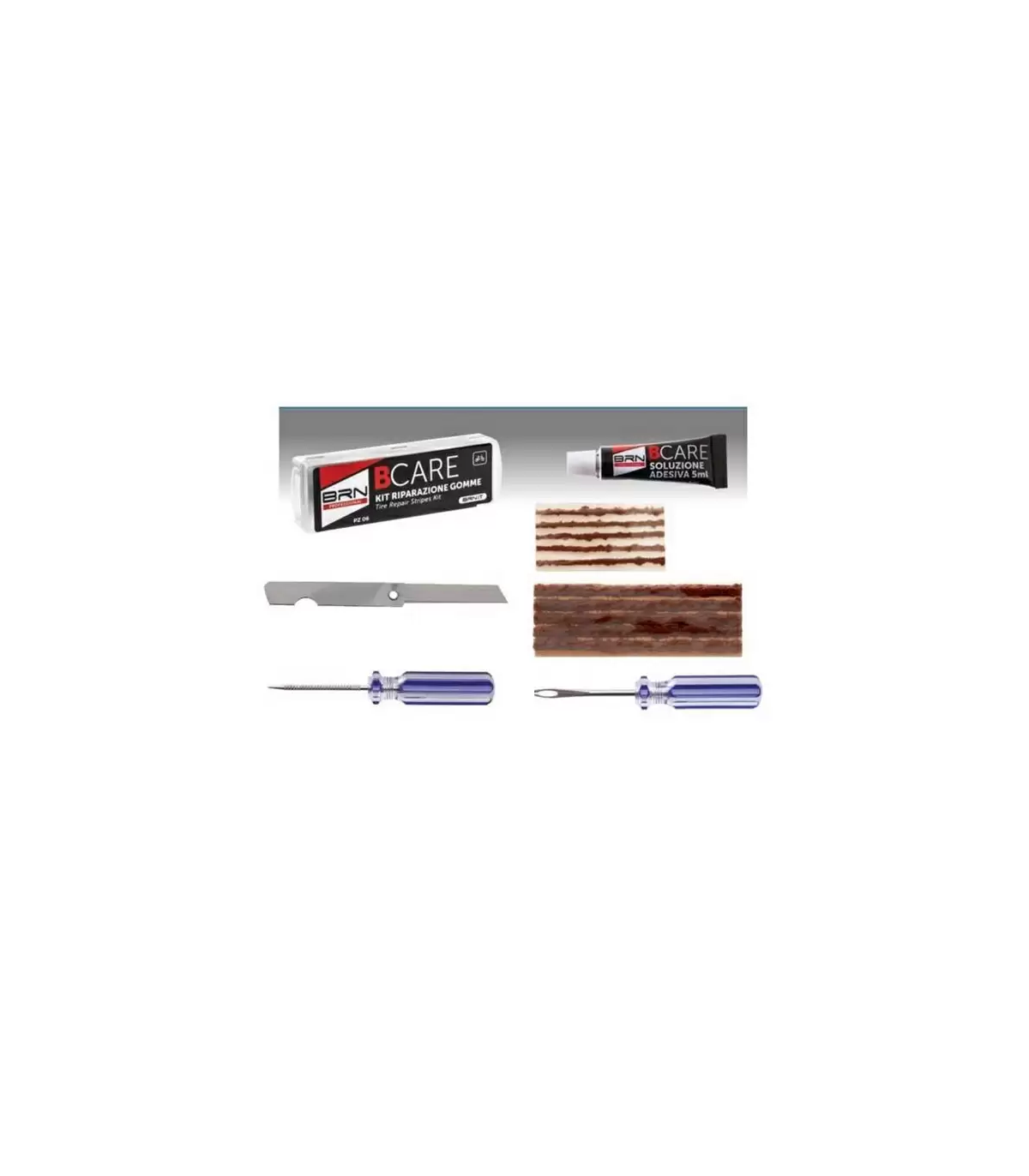 Kit di riparazione di Barbieri composto da: 5 gommini sigillanti, 2 attrezzi, 1 mastice da 5 ml e foglietto di istruzioni per l'uso. Un must per ogni ciclista!