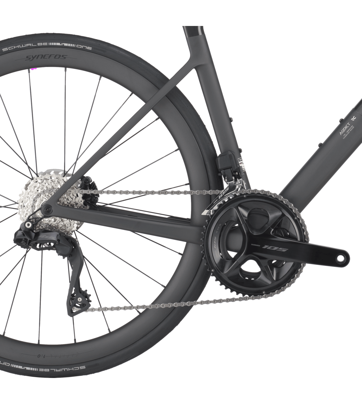 L’integrazione di una tecnologia di lavorazione avanzata e un sistema di bloccaggio del reggisella riprogettato consentono di avere pareti del tubo sella più sottili e di ridurre l’uso di materiale in questa parte di telaio fondamentale. Abbinato al nuovo e innovativo reggisella SYNCROS SP-R101-CF, lo spessore ridotto del tubo sella migliora la versatilità e favorisce il comfort durante le pedalate più lunghe. Inoltre, la nuovissima Addict RC offre un ampio spazio libero per i pneumatici di 34 mm, garantendo un comfort migliorato anche sui terreni più difficili.