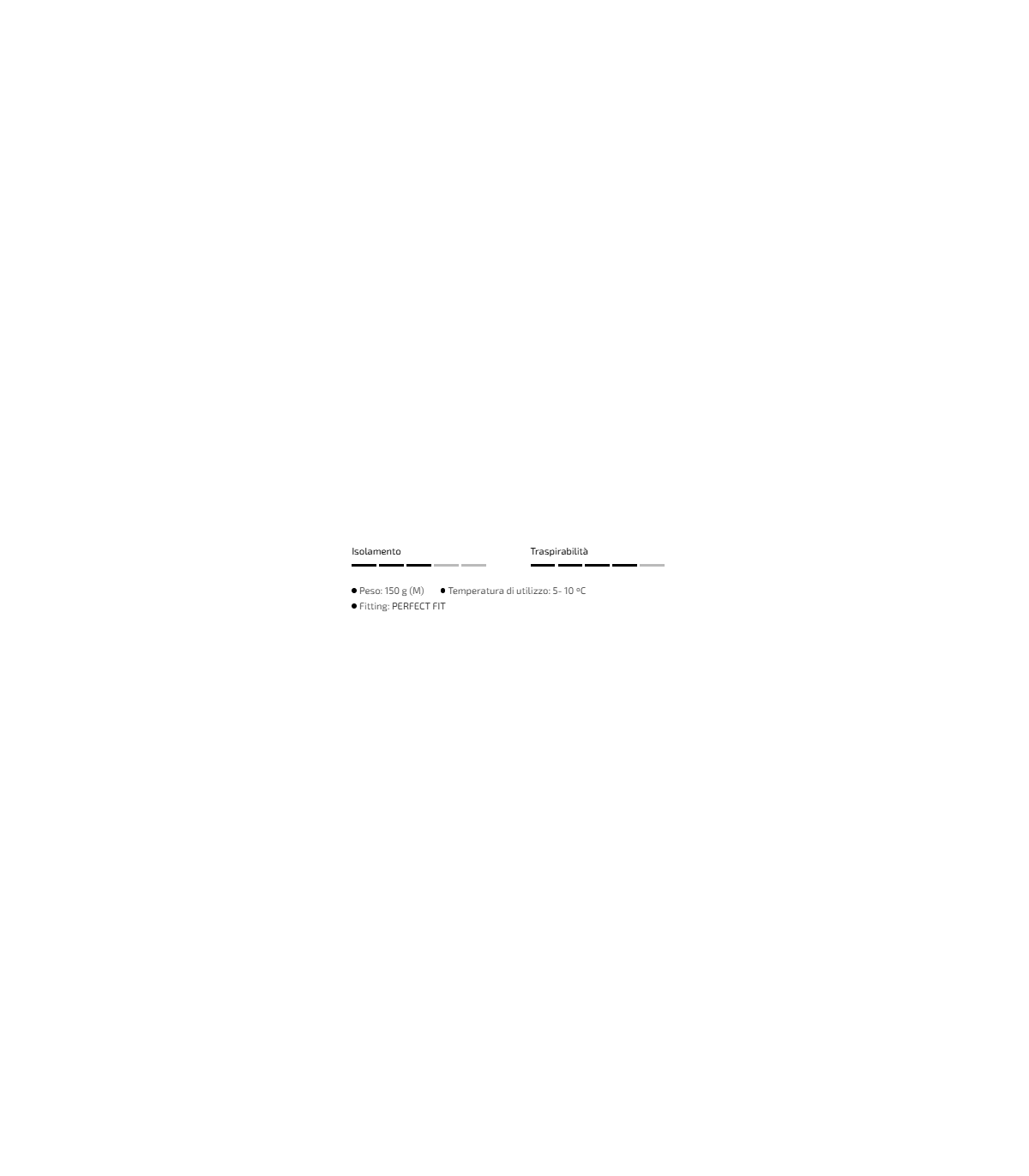 Termoregolazione: La sua struttura favorisce la ritenzione del calore corporeo, creando un ambiente interno caldo, asciutto e confortevole. Il tessuto agisce attivamente, evacuando l'eccesso di umidità ed evitando l'accumulo di sudore, permettendo di mantenere una sensazione costante di benessere durante lo sforzo. Il risultato è una regolazione intelligente della temperatura che migliora le prestazioni e il comfort ad ogni uscita.