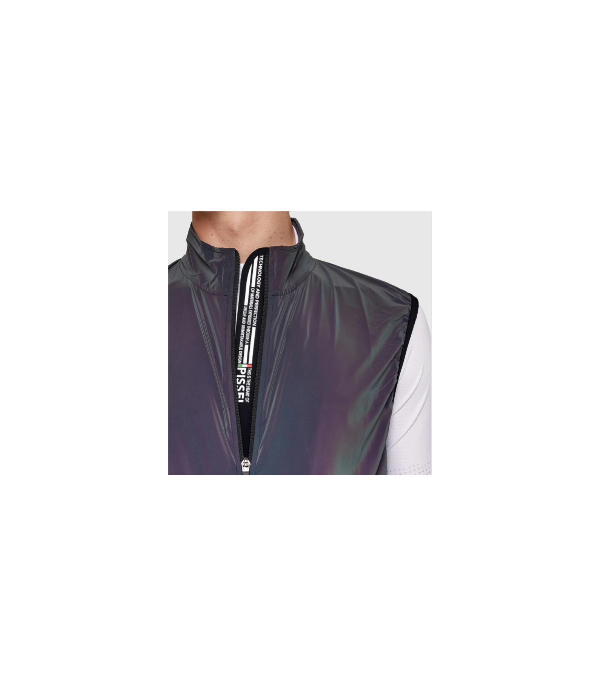 Gilet antivento Pissei Sanremo RX ultraleggero e tascabile realizzato con tessuto reflex pensato quindi per unire una protezione aggiuntiva in discesa o in caso di vento al massimo della sicurezza in strada.